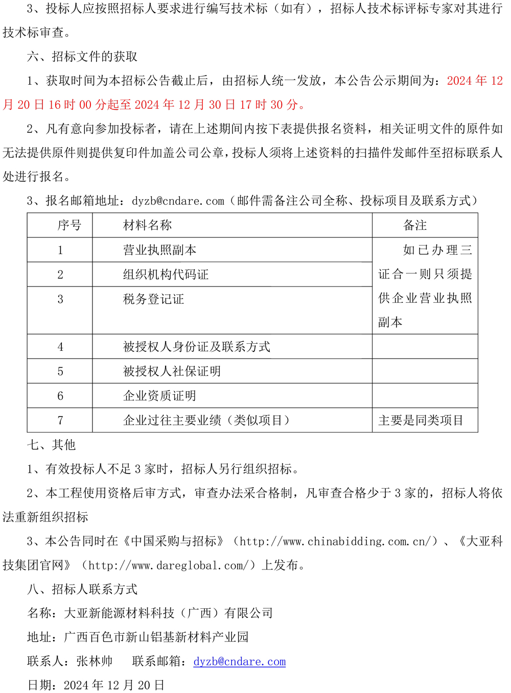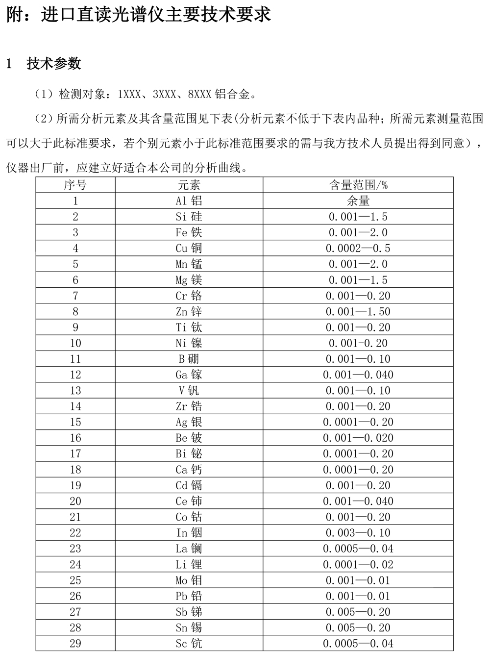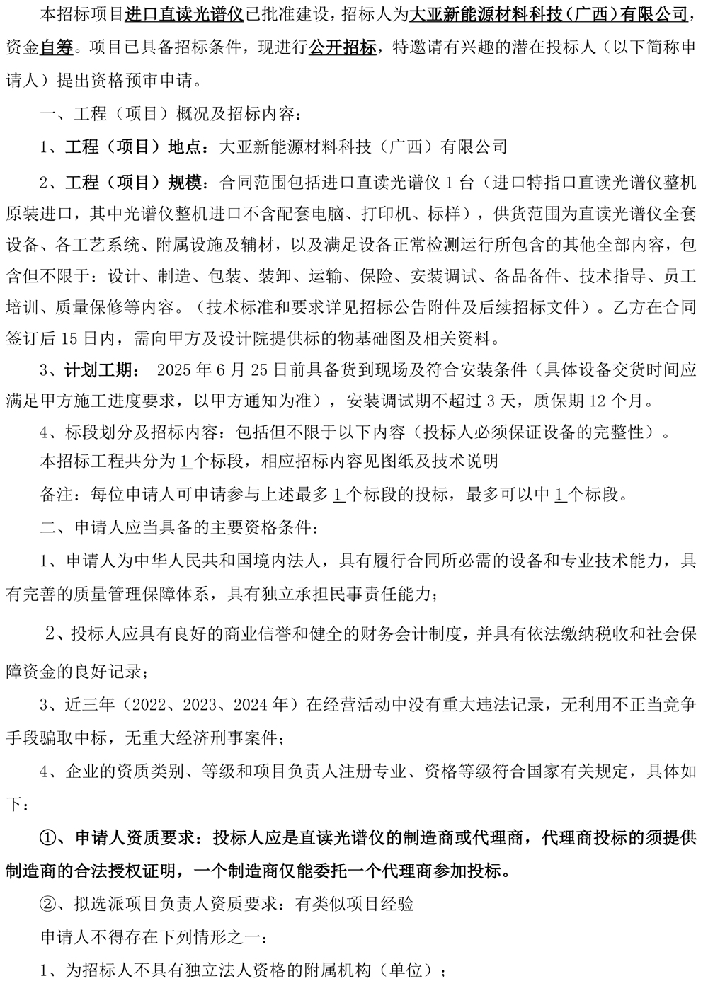 大亞新能源材料科技(廣西)有限公司進口直讀光譜儀招標公告