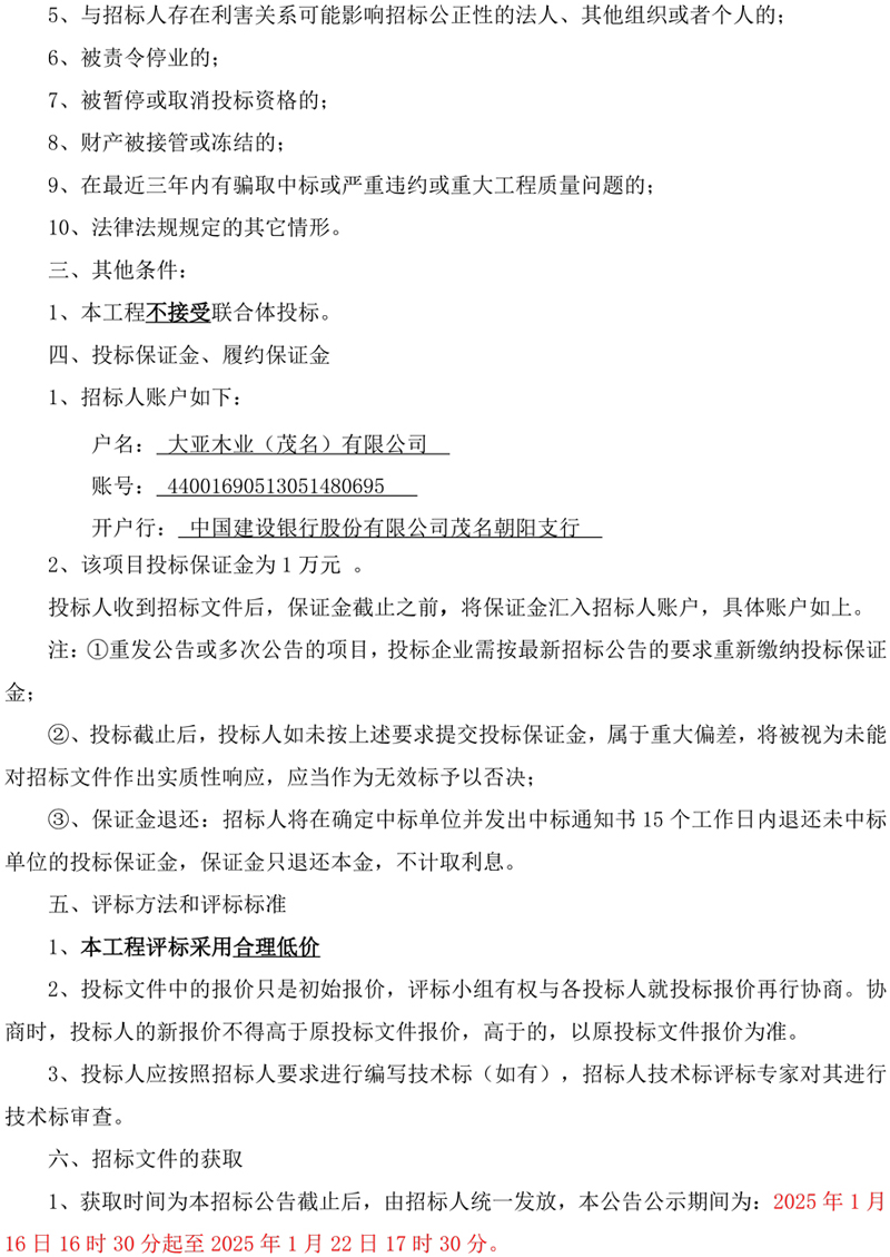 大亞木業(茂名)有限公司電機更換項目招標公告