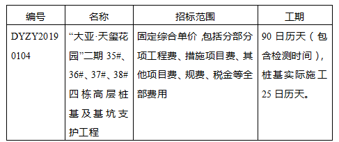 大亞天璽花園二期四棟高層樁基及基坑支護項目招標公告