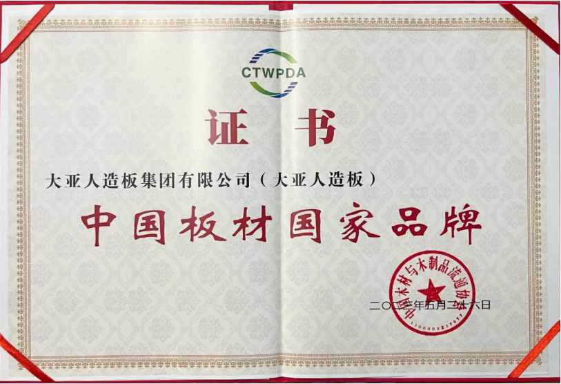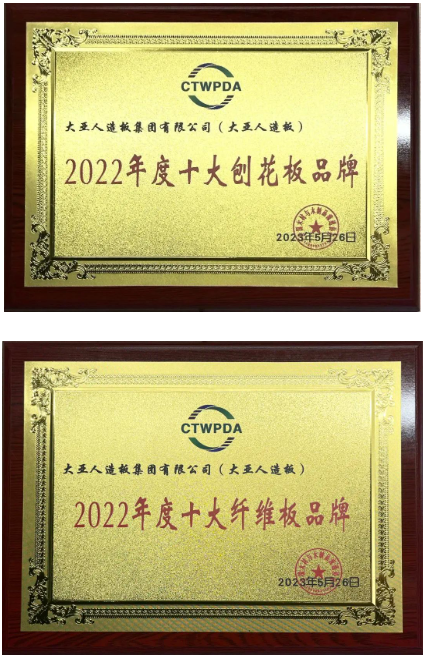 會(huì)議同期,中國(guó)木材與木制品流通協(xié)會(huì)對(duì)2022年木業(yè)優(yōu)秀企業(yè)進(jìn)行了表彰,大亞人造板榮獲中國(guó)板材國(guó)家品牌、中國(guó)板材民族品牌、2022年度十大刨花板品牌、2022年度十大纖維板品牌、2022年度板材優(yōu)秀制造企業(yè)等五項(xiàng)殊榮!