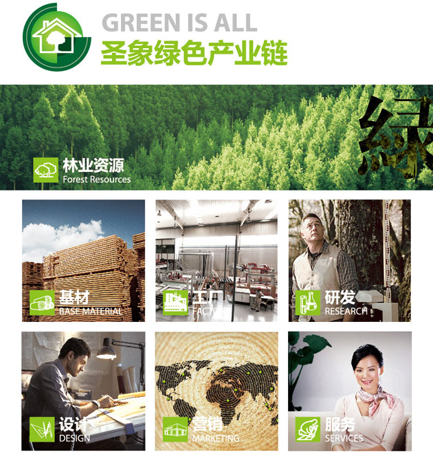 圣象綠色產業鏈是圣象品牌最重要的企業戰略之一,也是圣象長期引以為榮并長期堅持恪守的綠色方案和發展根基。圣象將可持續發展理念縱向貫通于產業鏈上下游,涵蓋林業資源、基材、工廠、研發到設計、營銷、服務7大環節,形成一個全面完整的品質質控體系。