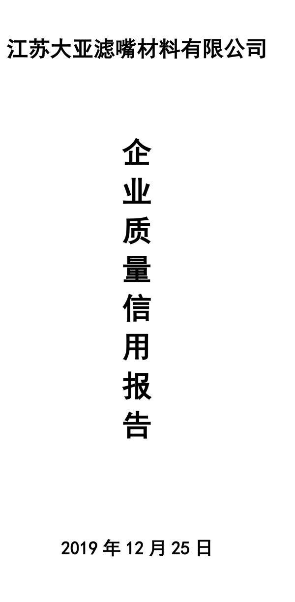 企業質量信用報告——江蘇大亞濾嘴材料有限公司